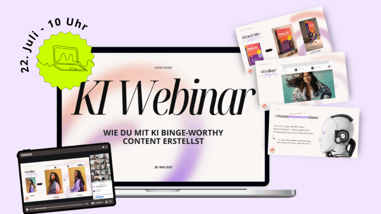 Erstelle beeindruckende Bilder mit künstlicher Intelligenz – ohne Fotograf, ohne Studio. Im Webinar lernst du, wie du professionelle Business-Fotos und kreative Looks selbst gestaltest. Für Anfänger:innen und Profis, die ihre Marke visuell stärken möchten. Melde dich jetzt an und sichere dir deinen Platz im Webinar